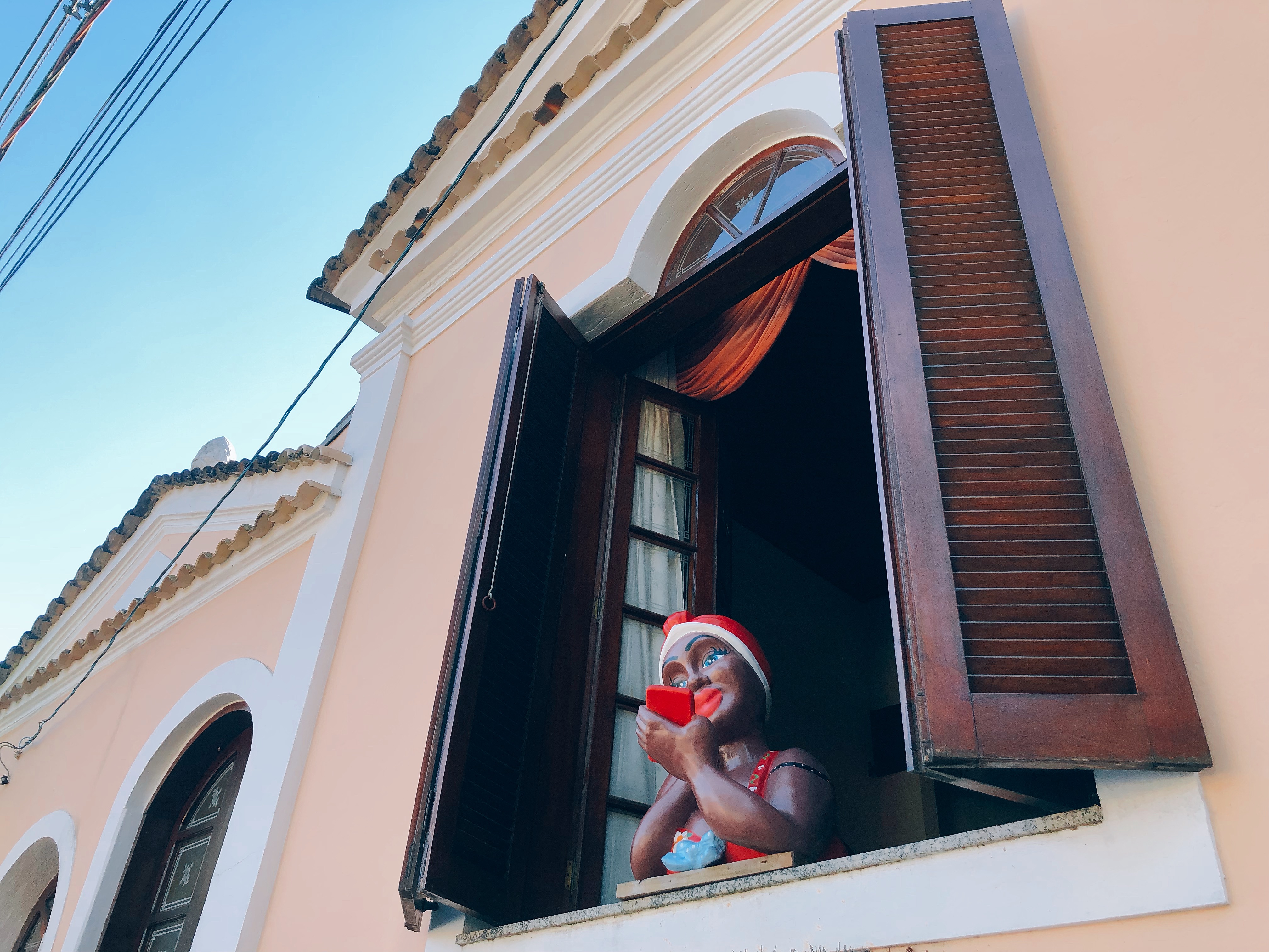 A espera agora não é mais na janela. Essa intervenção busca resignificar a estética da conhecida "Boneca Namoradeira" que aguarda na janela.